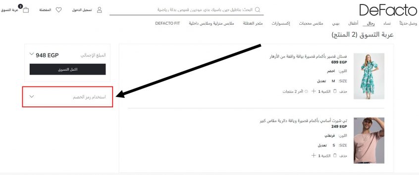 - ألصق الكود في خانة الخصم أثناء عملية الدفع.