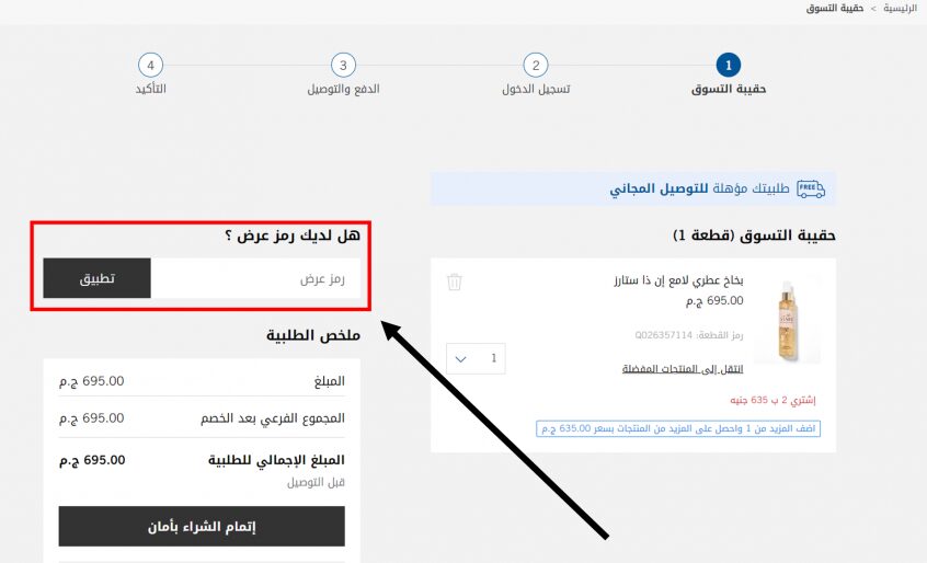 - شحن مجاني عند استيفاء الحد الأدنى للإنفاق 479 جنيه مصر.